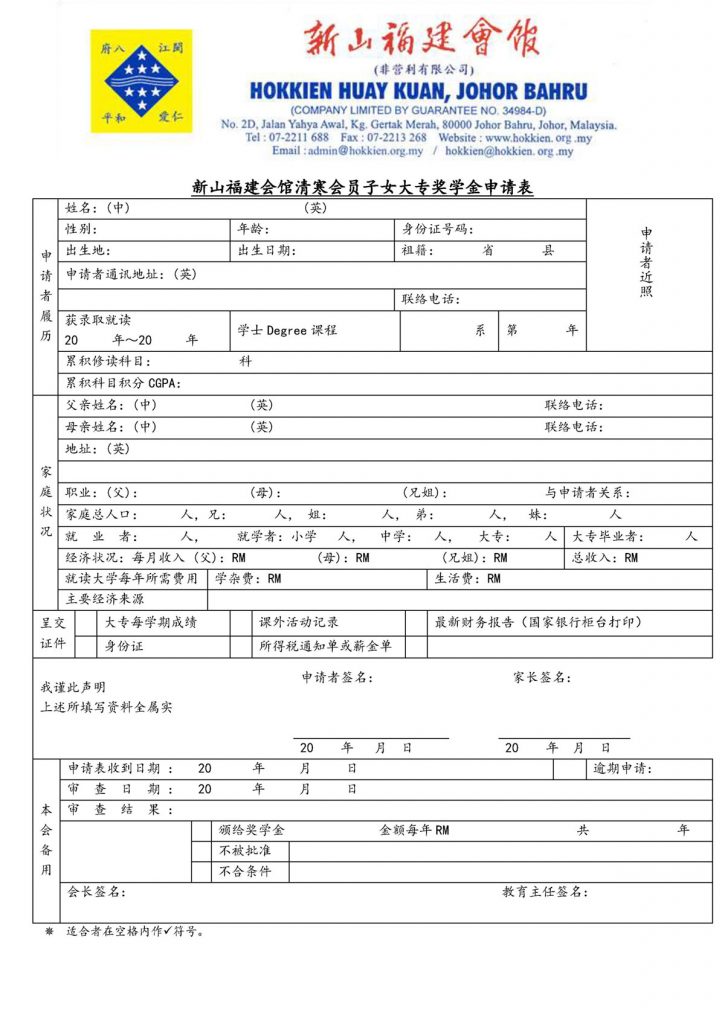 会馆动态 会馆活动 教育组 September 2, 2020February 19, 2024 大专奖学金简章及表格下载 Posted By: AdminTeam 1532 Views 下载大专奖学金简章及表格