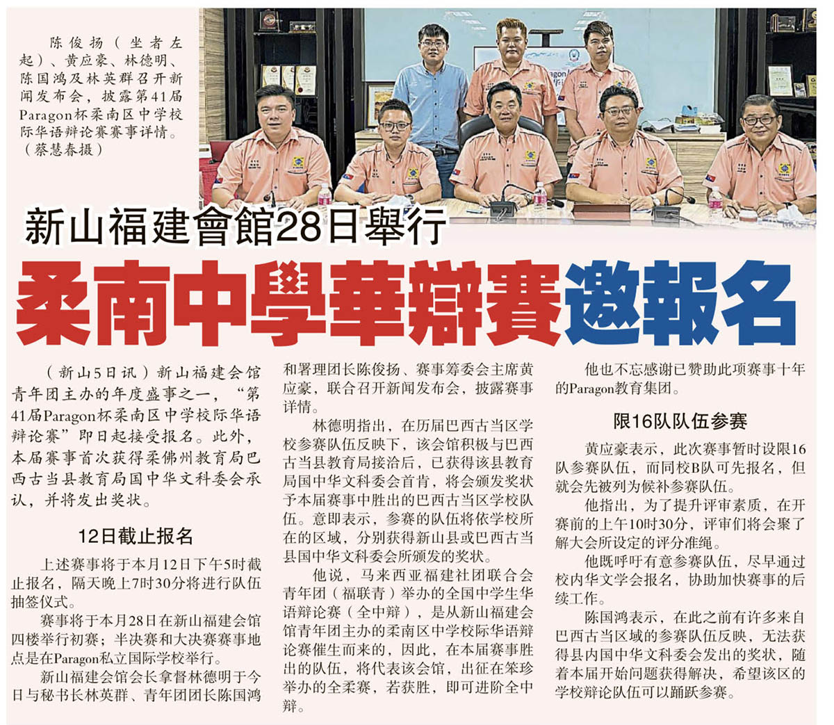 新山福建会馆28日举行-柔南中学华辩赛邀报名
