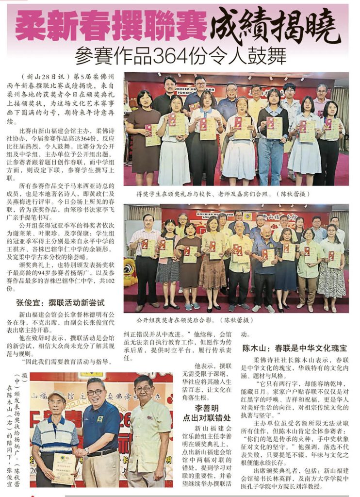 柔新春撰联赛成绩揭晓-参赛作品364份令人鼓舞