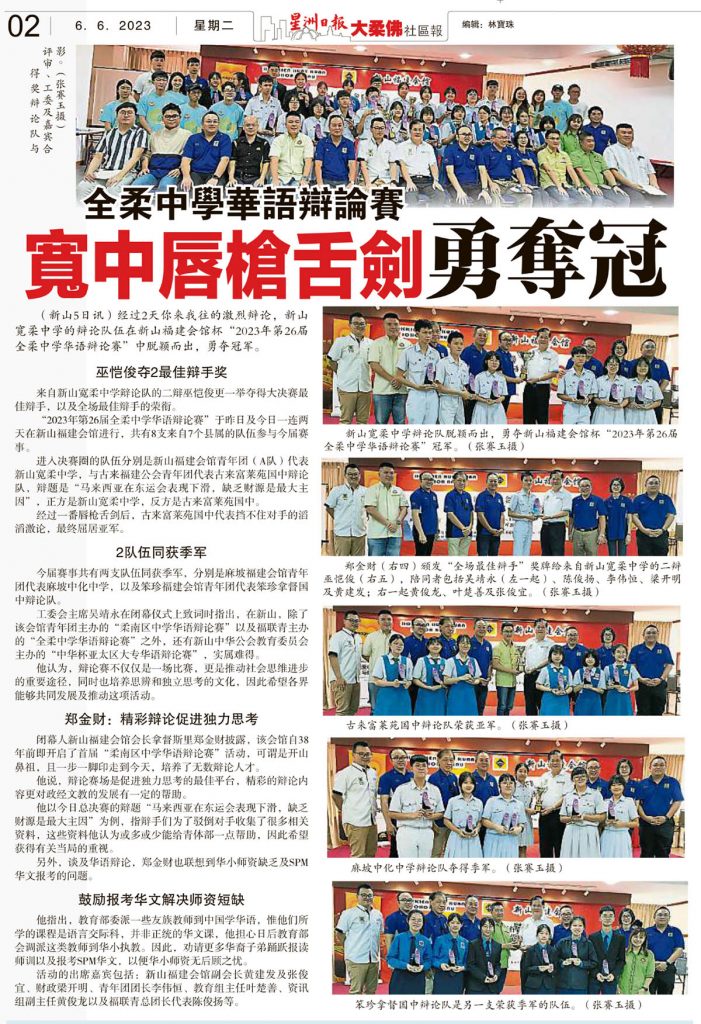 全柔中学华语辩论赛-宽中唇枪舌剑勇夺冠