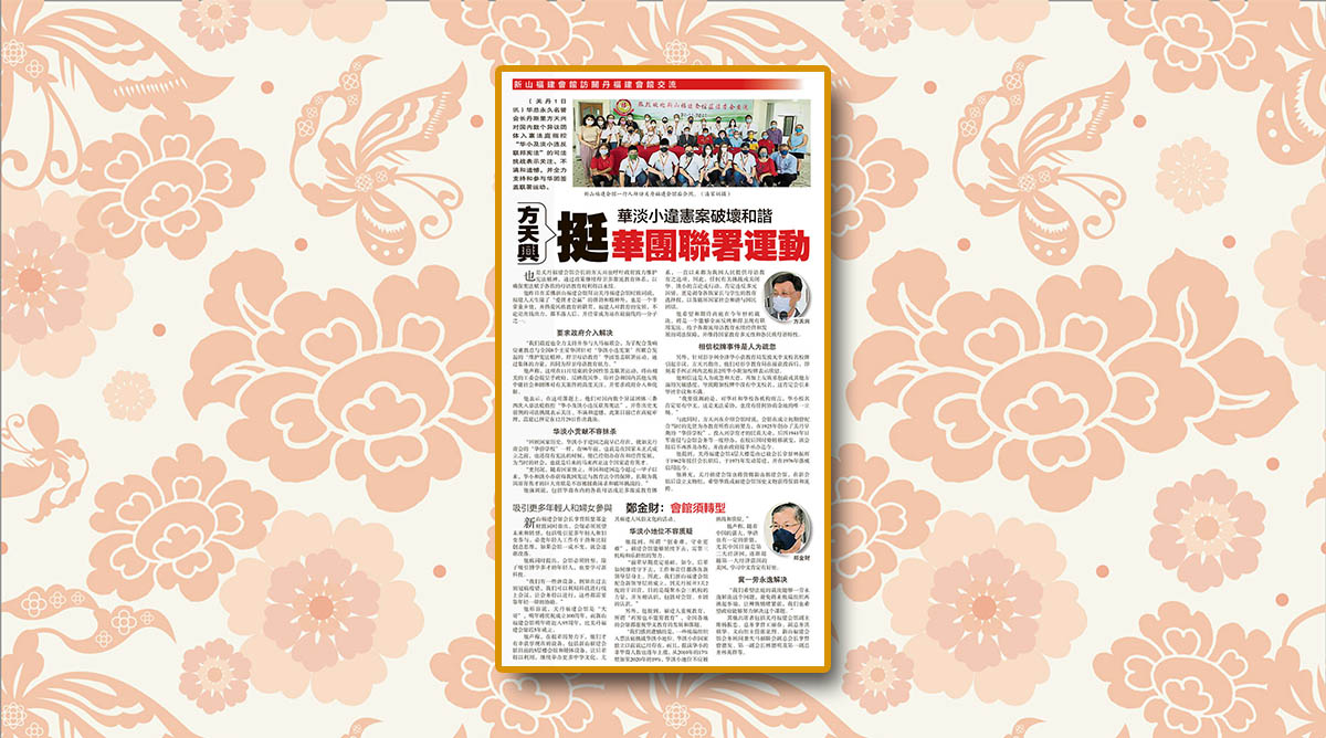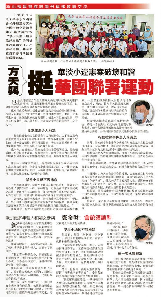 剪报室 活动记录 December 2, 2021February 19, 2024 华淡小违宪案破坏和谐-方天兴挺华团联署运动 Posted By: AdminTeam 305 Views 星洲日报剪报
