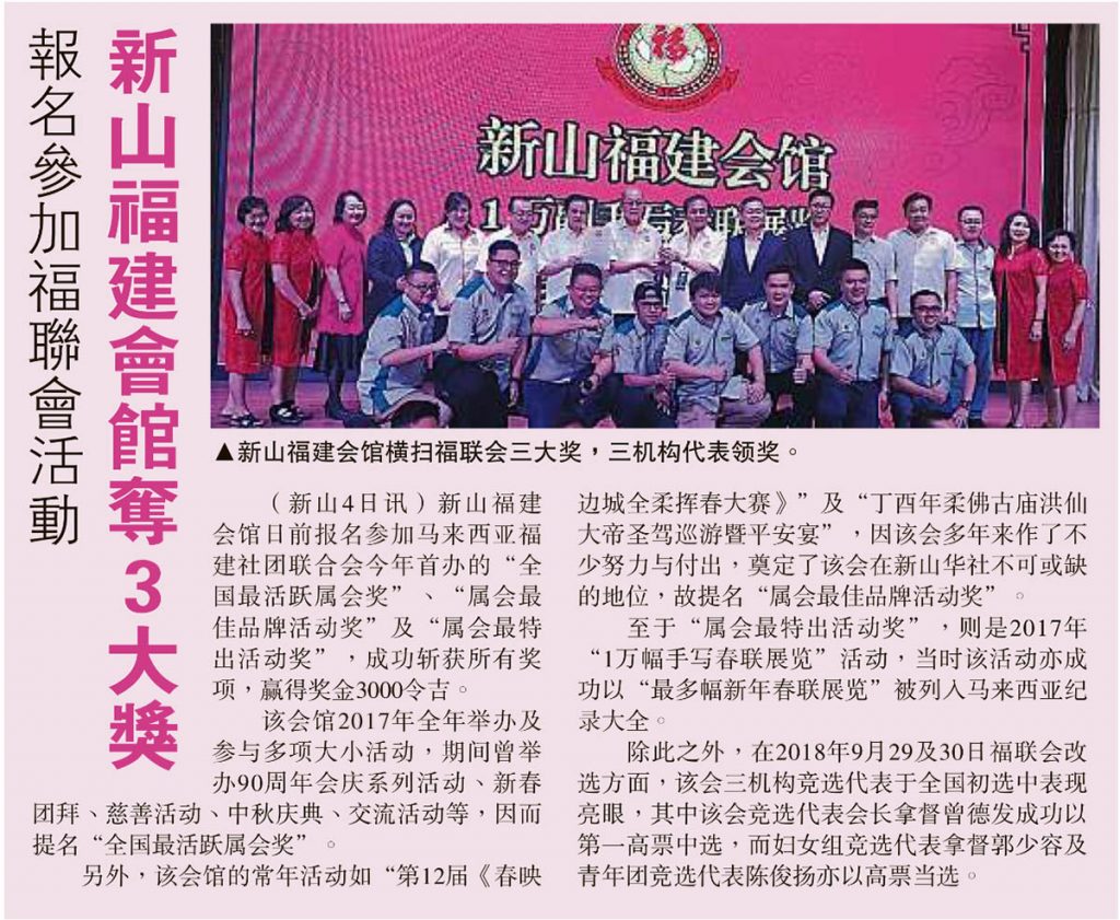 新山福建会馆游神平安宴-自闭儿作品逾2万得标