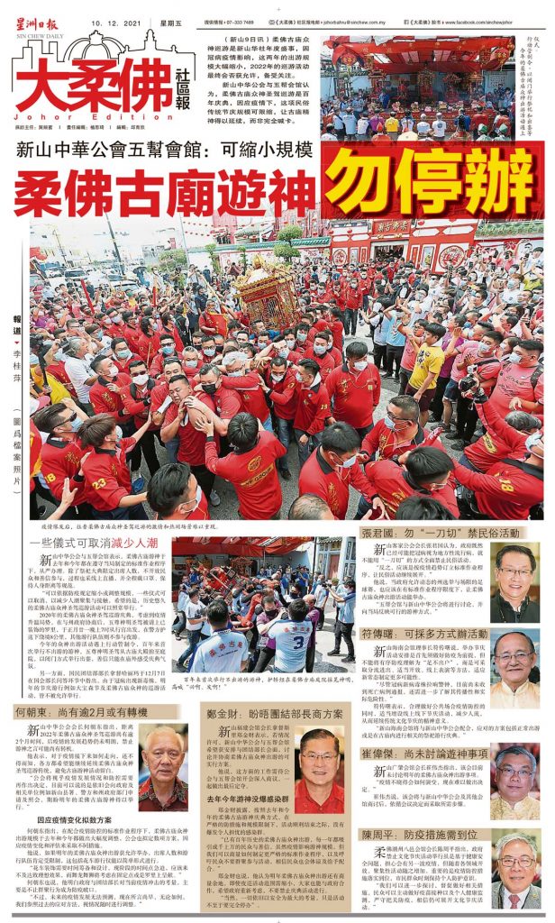 剪报室 活动记录 December 10, 2021February 19, 2024 新山中华公会五帮会馆-可缩小规模-柔佛古庙游神勿停办 Posted By: AdminTeam 843 Views 星洲日报剪报