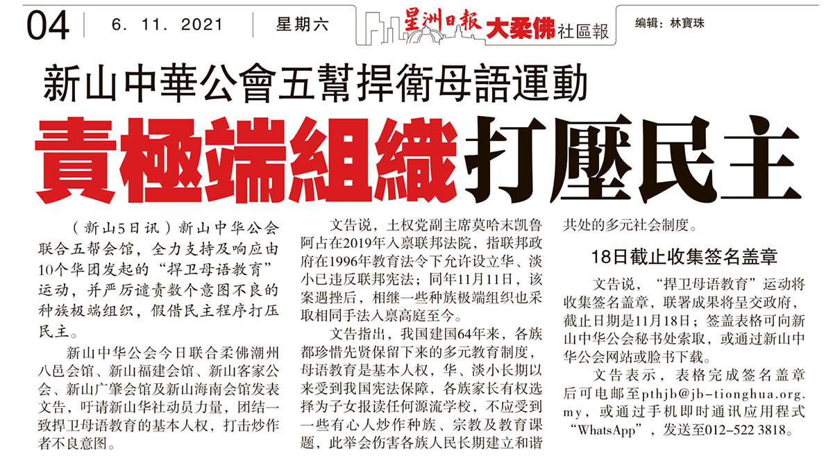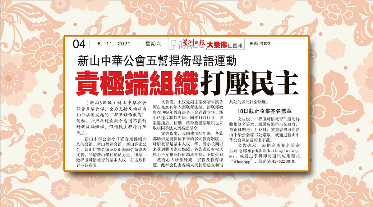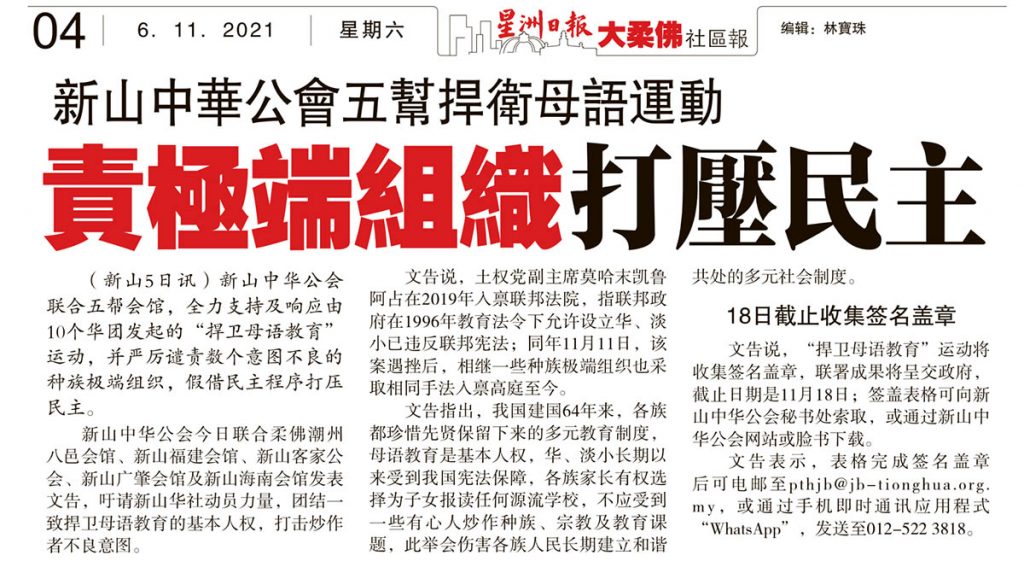新山中华公会五帮捍卫母语运动-责极端组织打压民主