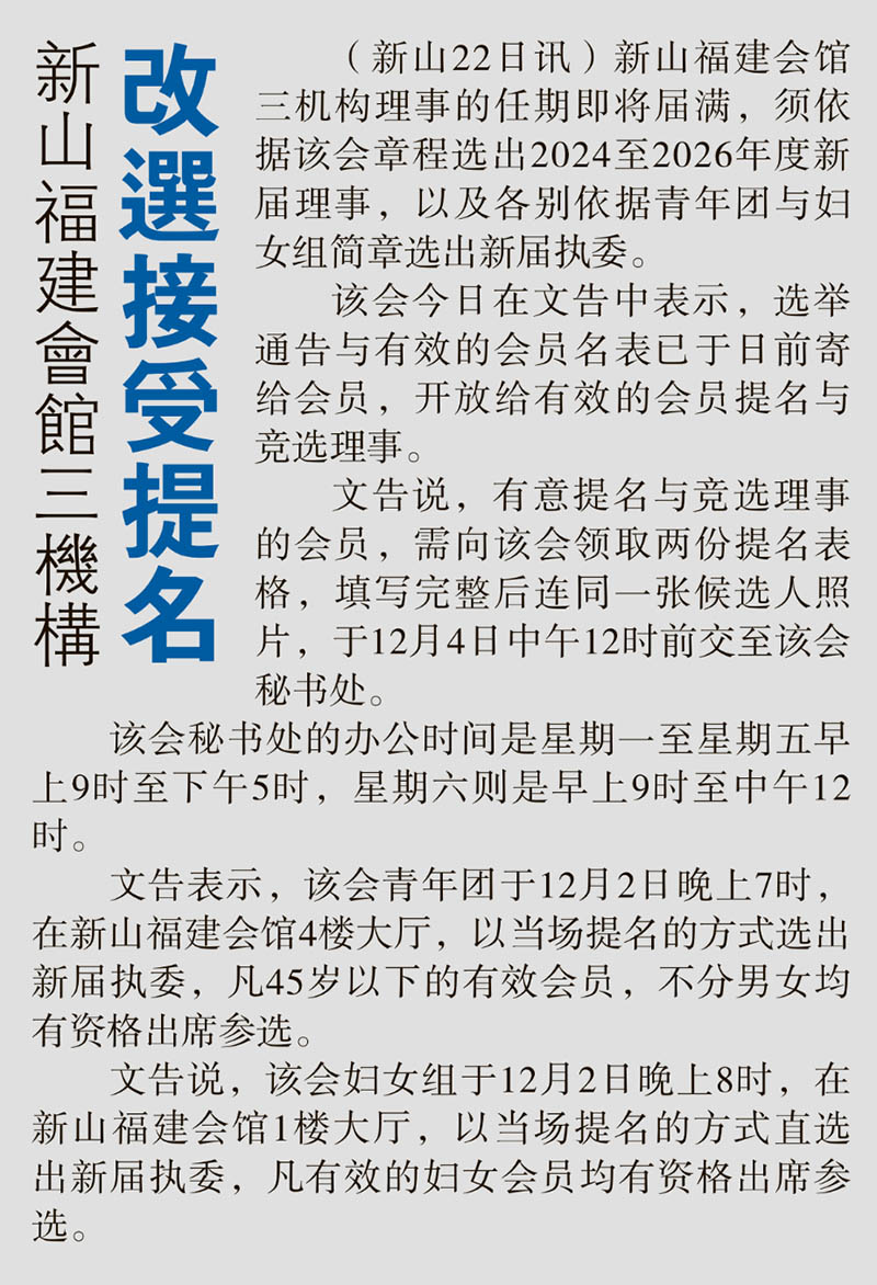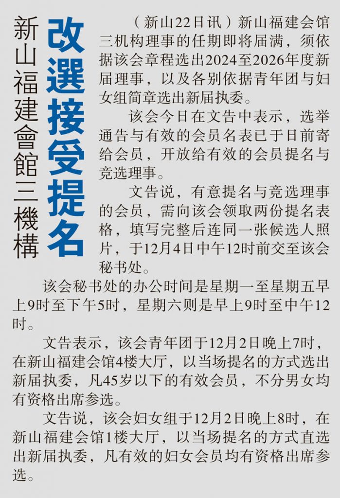 新山福建会馆与柔诗社联办-新春撰联赛邀报名