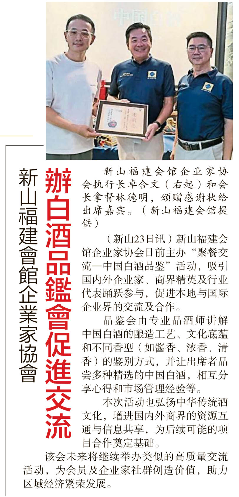 新山福建会馆企业家协会-办白酒品鉴會促进交流