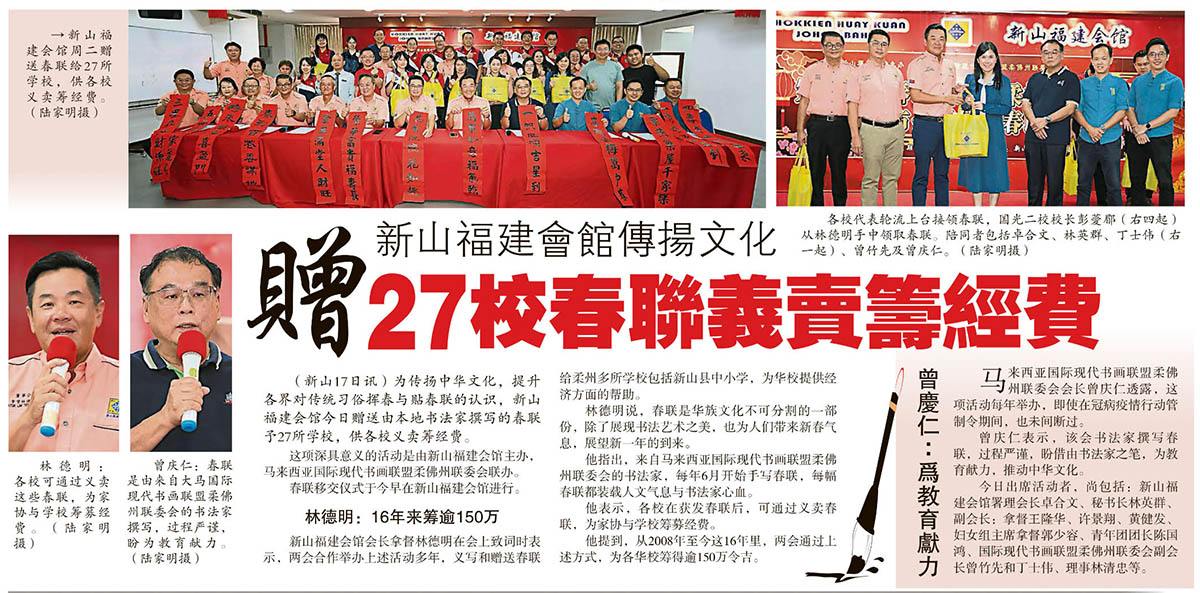 新山福建会馆传扬文化-赠27校春联义卖筹经费