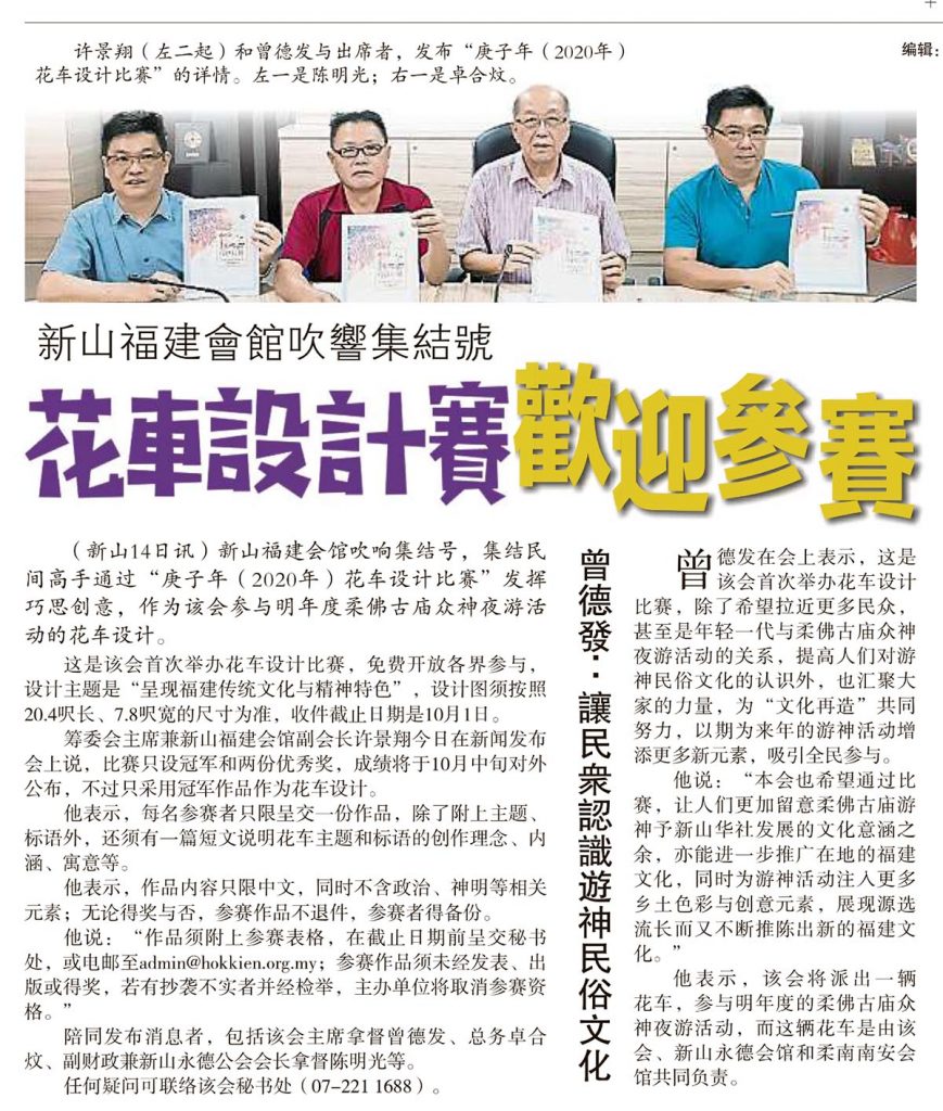 新山福建会馆吹响集结号-花车设计赛欢迎参赛