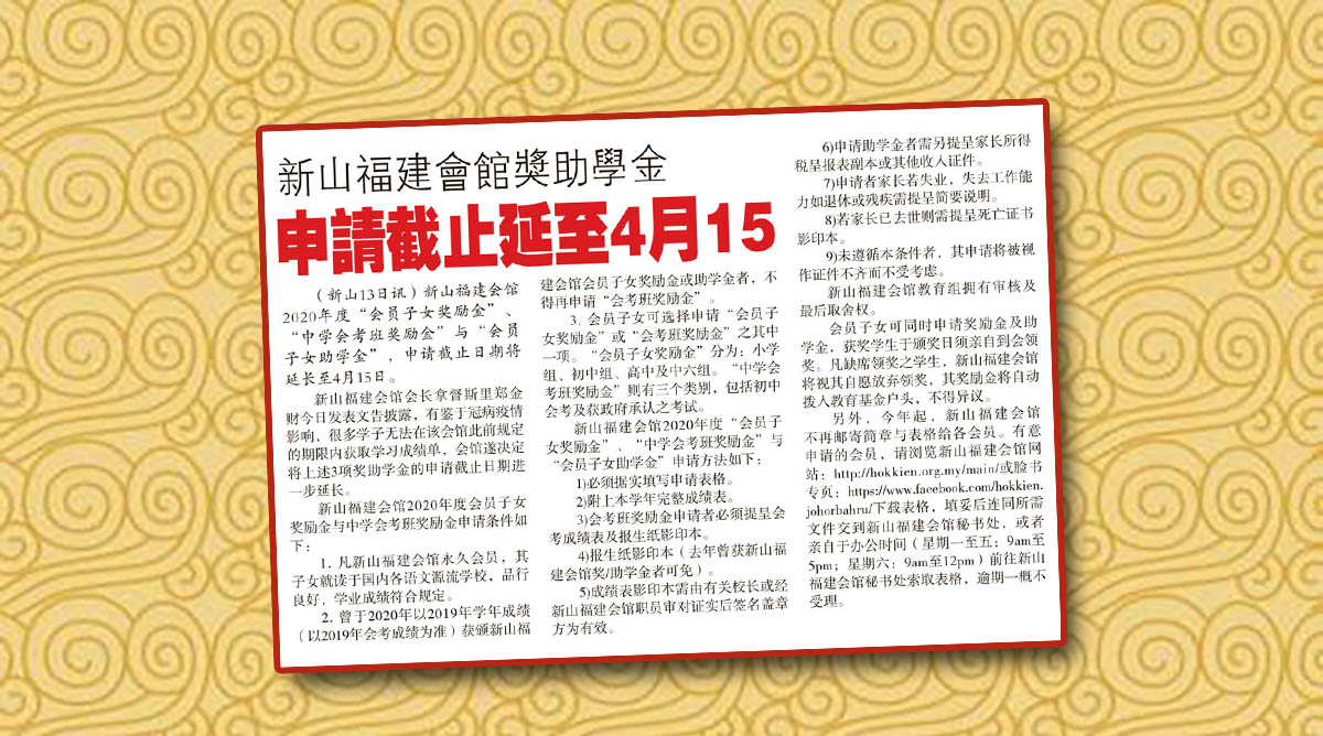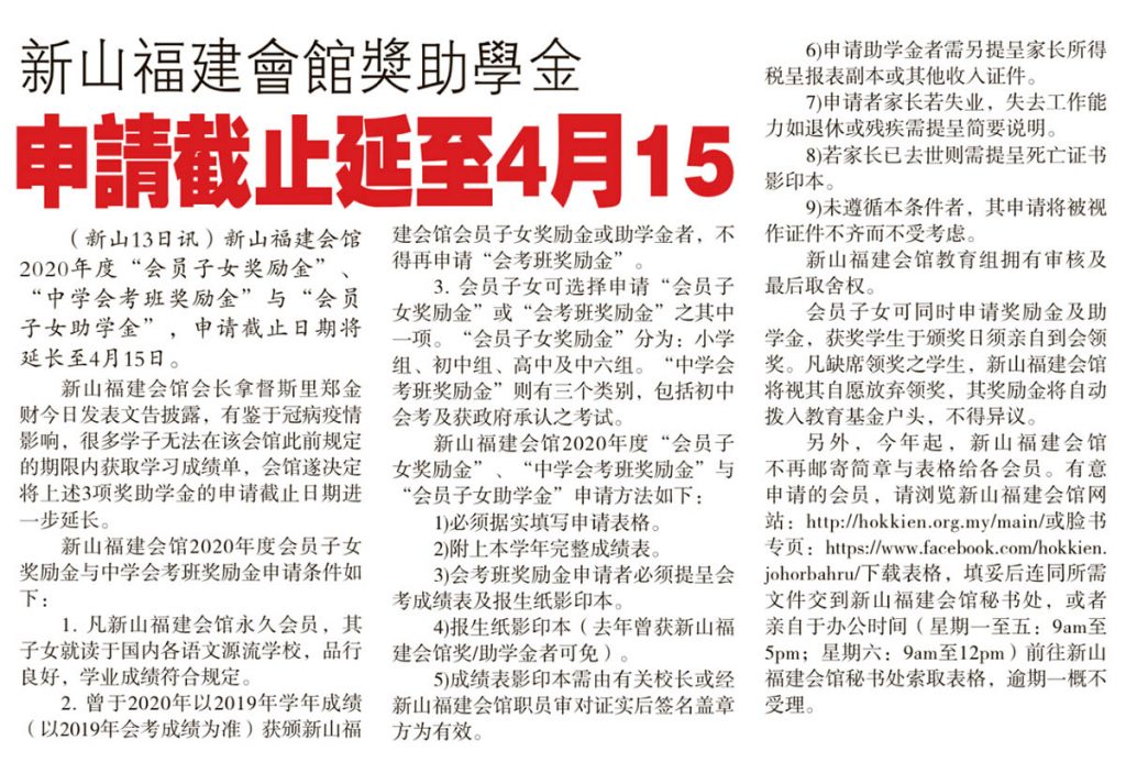 新山福建会馆《不忘初心行动》次阶段-将开放会员子女申请援金