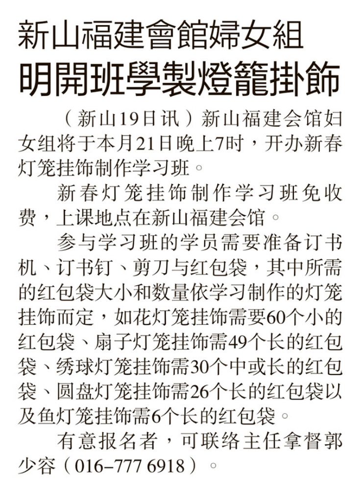 新山福建会馆妇女组-明开班学制灯笼挂饰