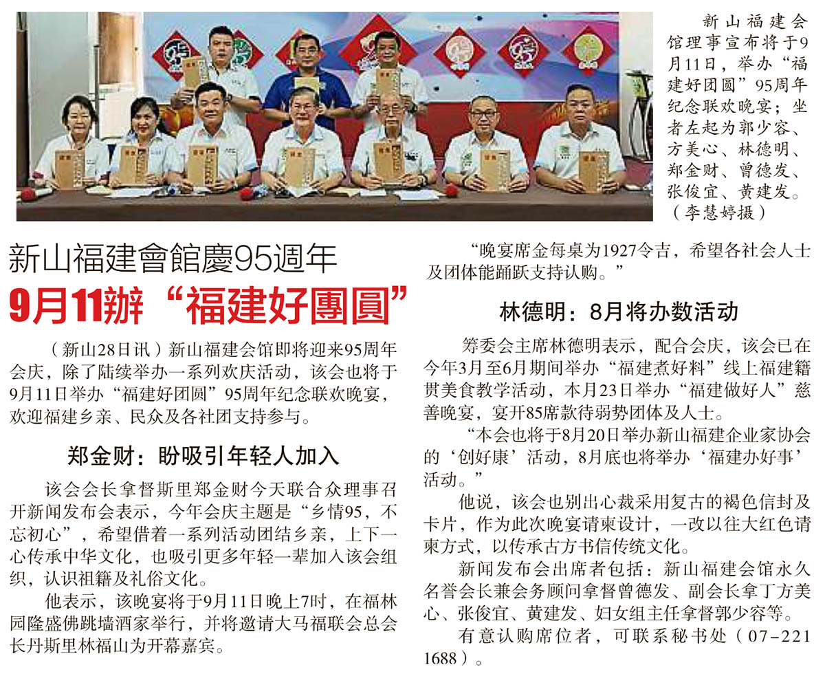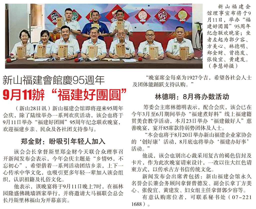 新山福建会馆庆95周年-9月11办“福建好团圆”