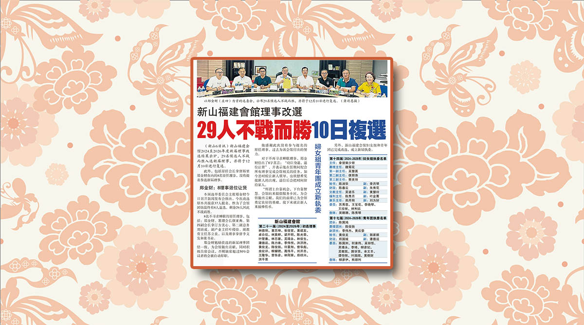 新山福建会馆理事改选-29人不战而胜10日复选