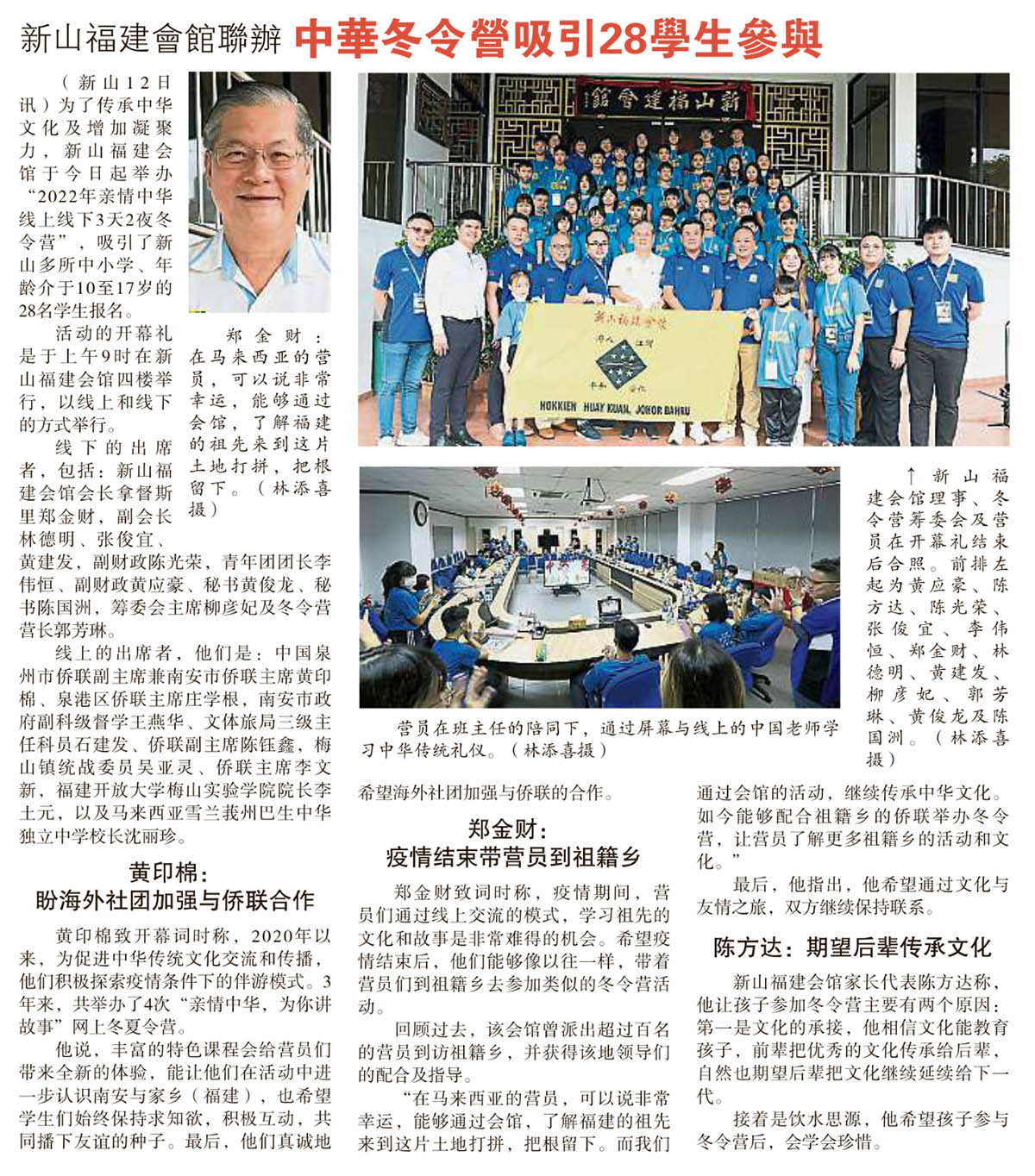 新山福建会馆联办-中华冬令营吸引28学生参与