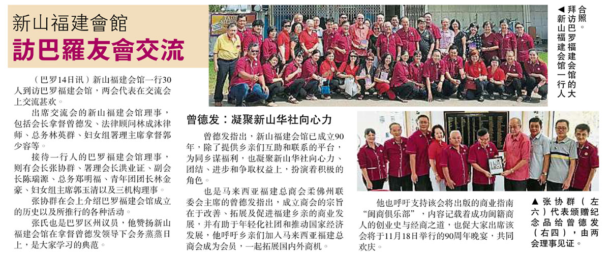 新山福建会馆访巴罗友会交流