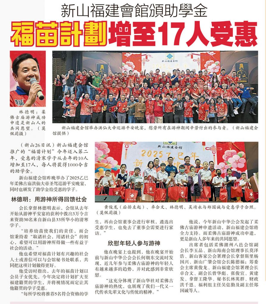 会馆动态 会馆活动 剪报室 教育组 最新消息 February 27, 2025 新山福建会馆颁助学金-福苗计划增至17人受惠 Posted By: AdminTeam 158 Views 星洲日报剪报