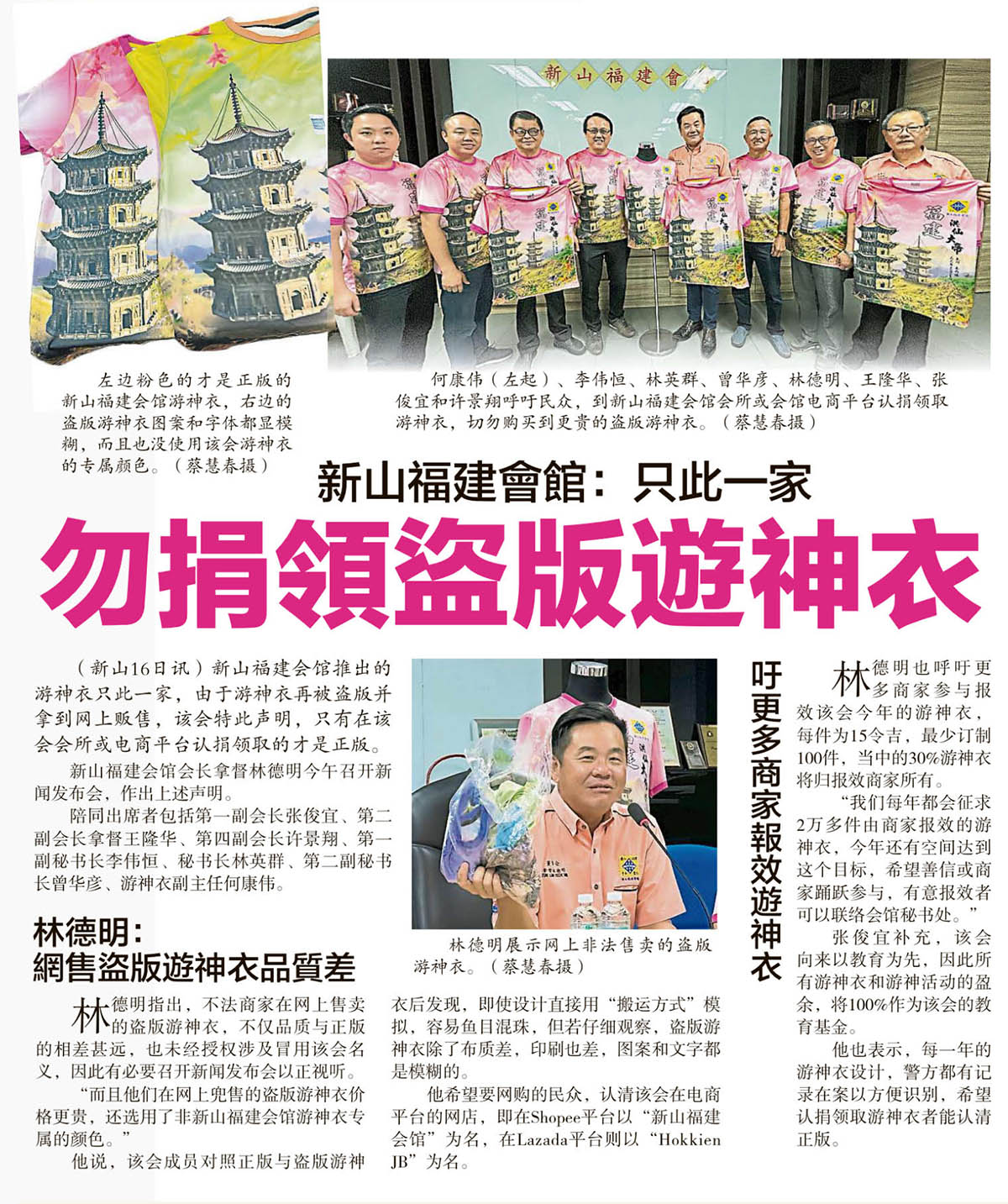 新山福建会馆:只此一家-勿捐领盗版游神衣