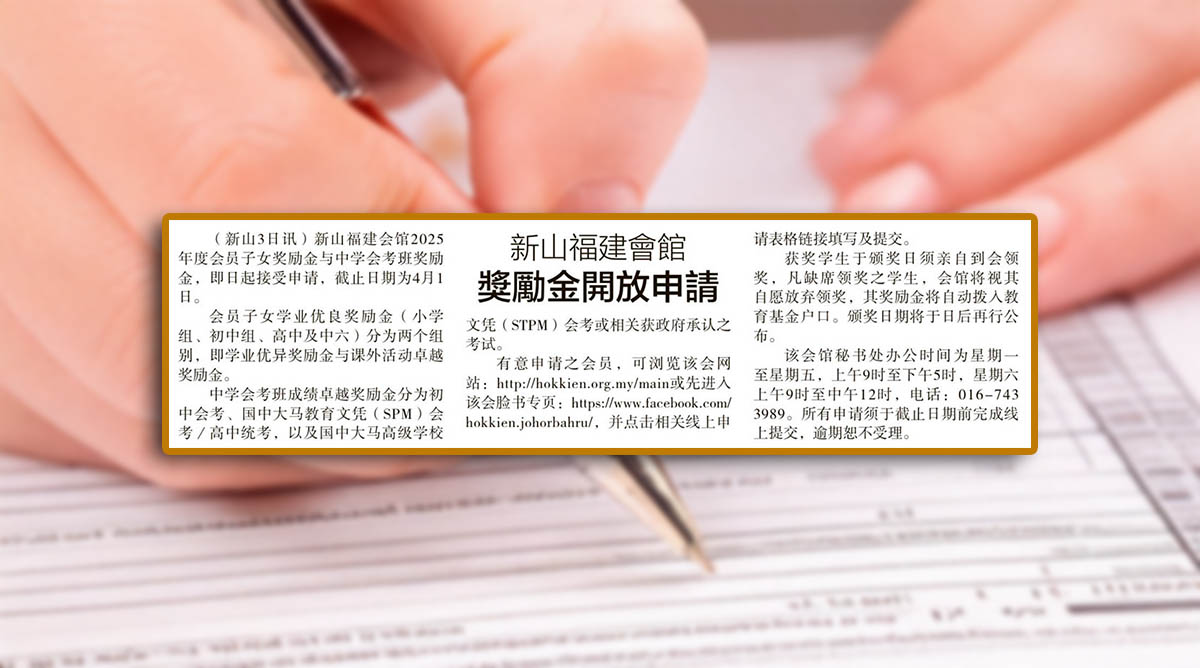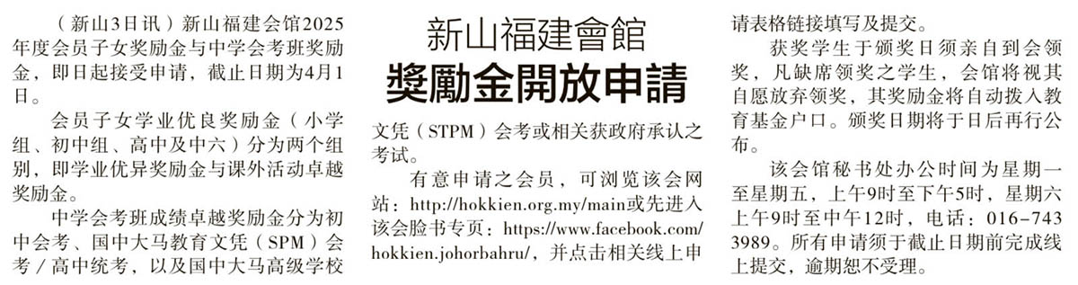 新山福建会馆28日举行-柔南中学华辩赛邀报名