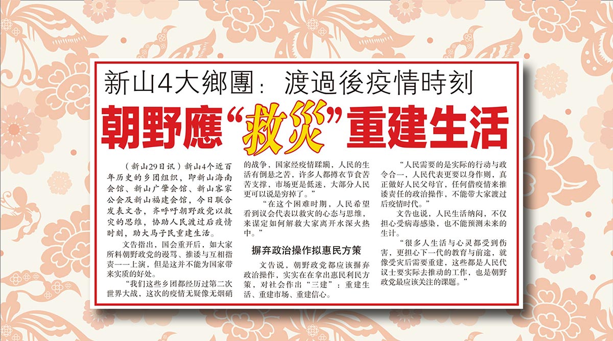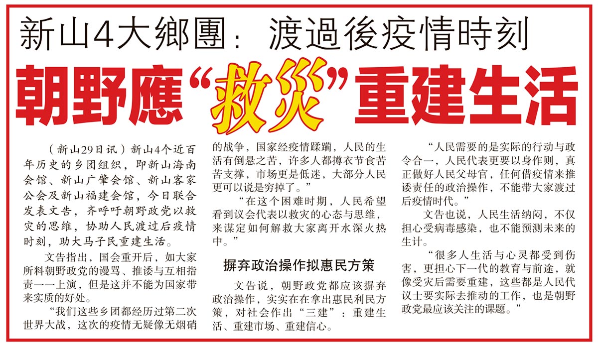 新山4大乡团:度过后疫情时刻-朝野应“救灾”重建生活