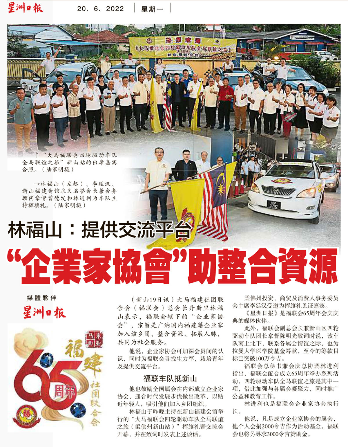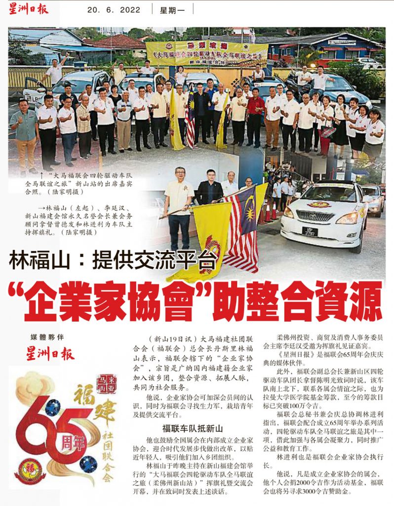 会馆动态 会馆活动 剪报室 June 20, 2022February 19, 2024 林福山:提供交流平台-企业加协会助整合资源 Posted By: AdminTeam 352 Views 星洲日报剪报