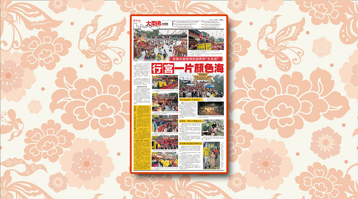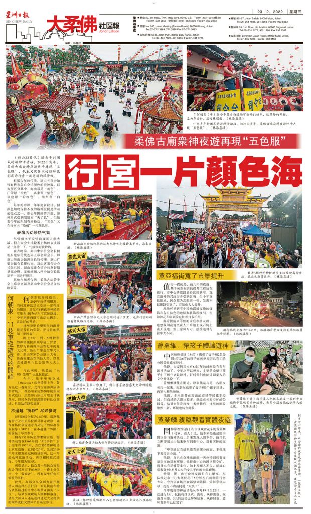柔佛古庙众神夜游再现“五色服”-行宫一片颜色海