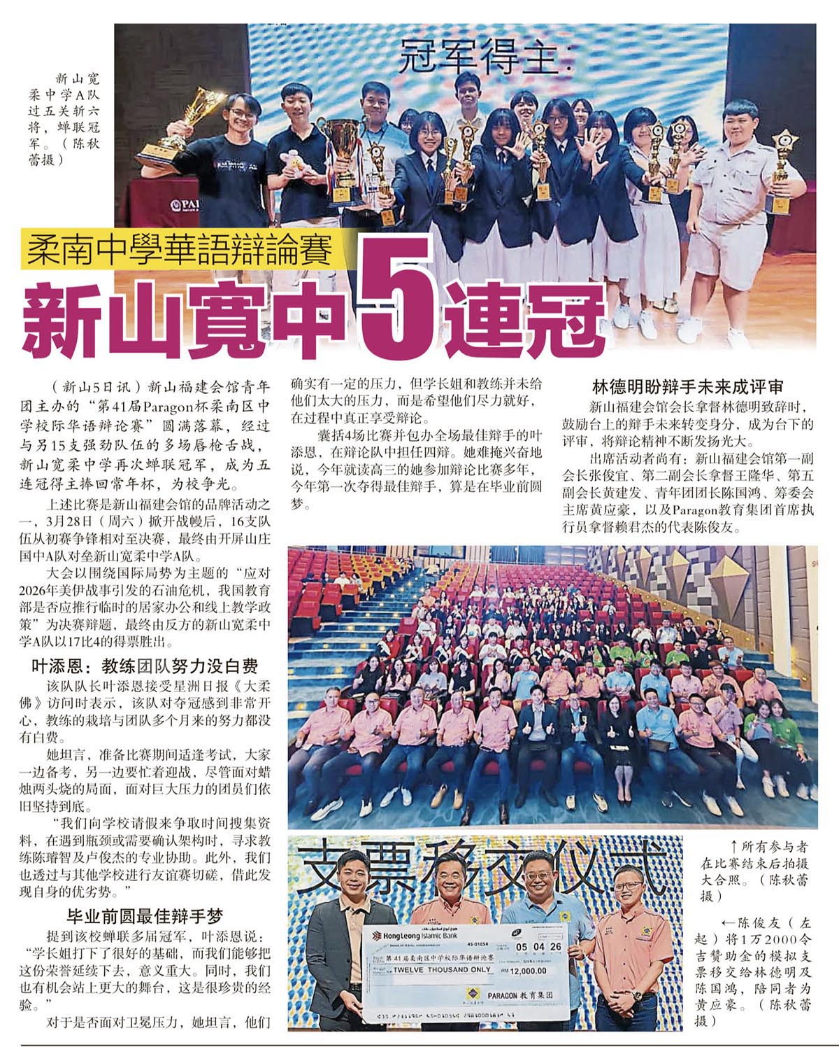 柔南中学华语辩论赛-新山宽中5连冠