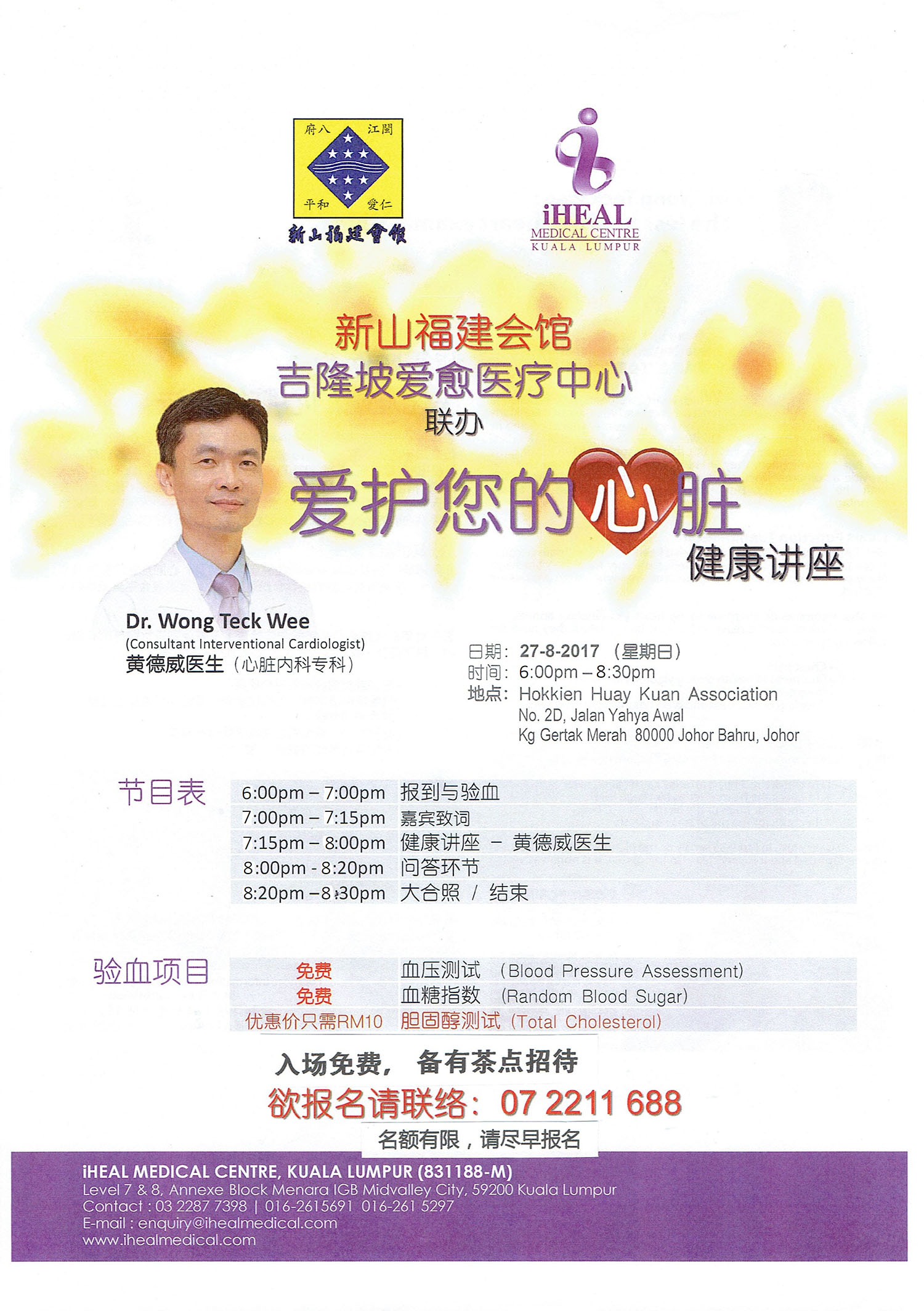 爱护您的心脏-新山福建会馆27日邀听讲座