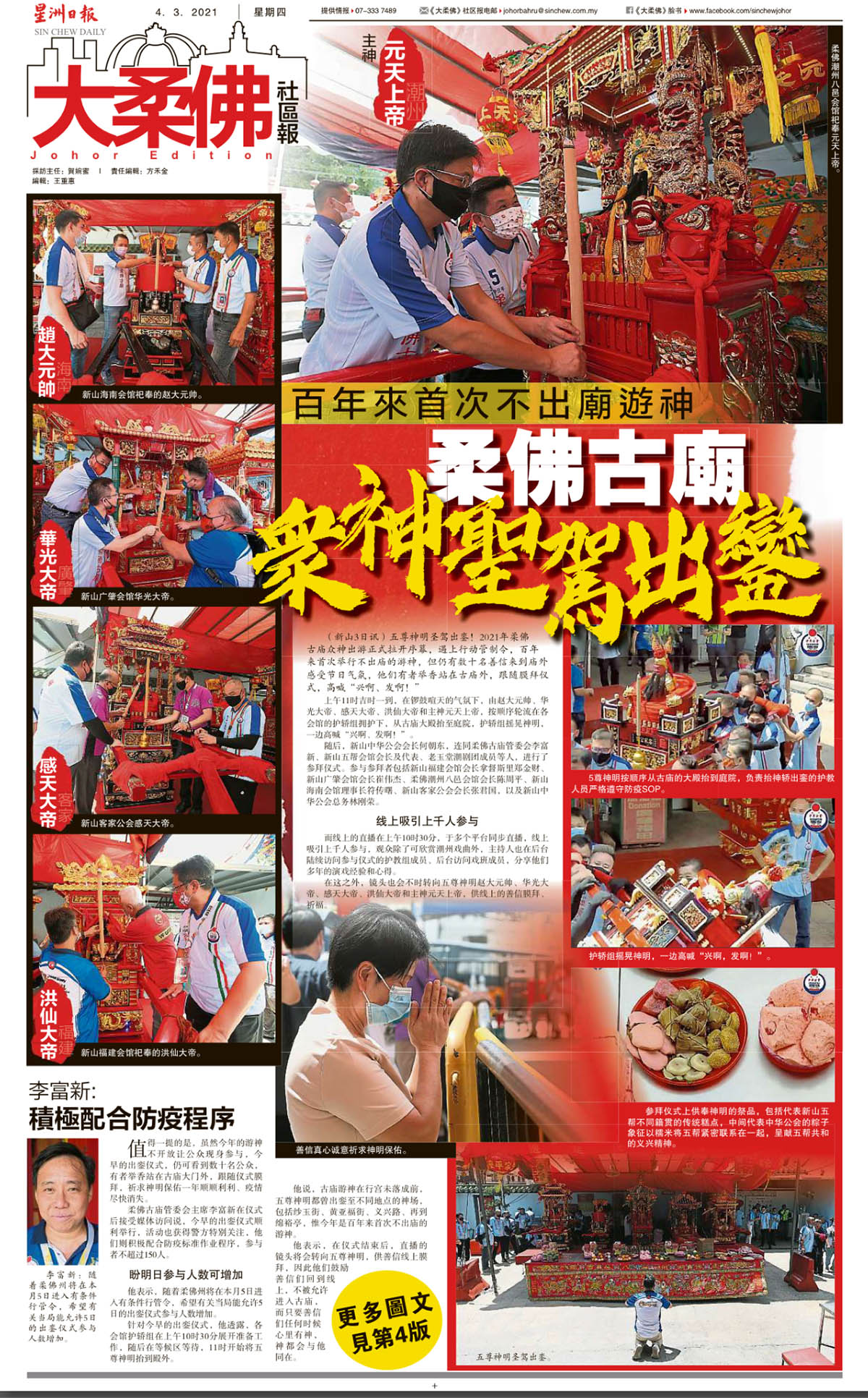 会馆动态 会馆活动 剪报室 March 4, 2021February 19, 2024 百年来首次不出庙游神-众神圣驾出銮 Posted By: AdminTeam 782 Views 星洲日报剪报 星洲日报剪报