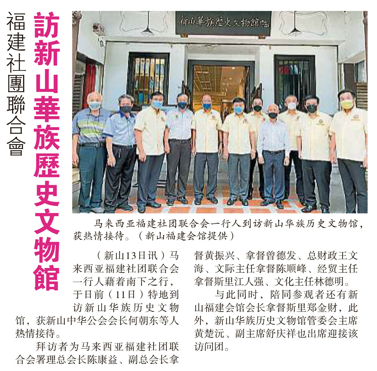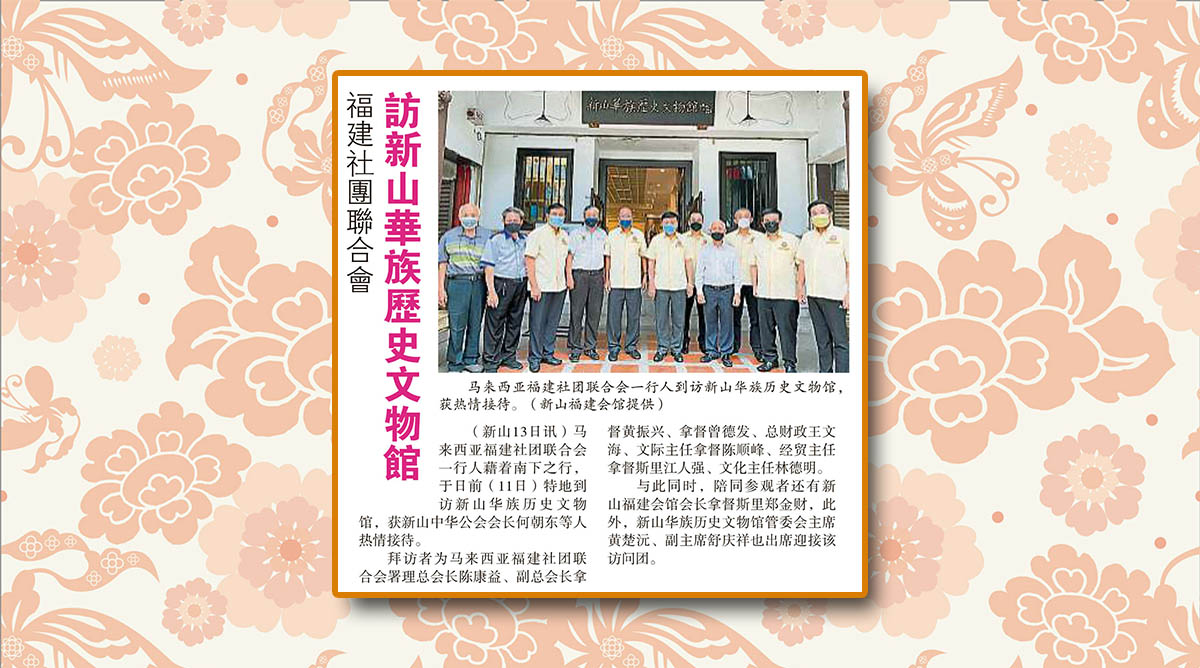 会馆动态 会馆活动 剪报室 December 14, 2021February 19, 2024 福建社团联合会-访新山华族历史文物馆 Posted By: AdminTeam 775 Views 星洲日报剪报