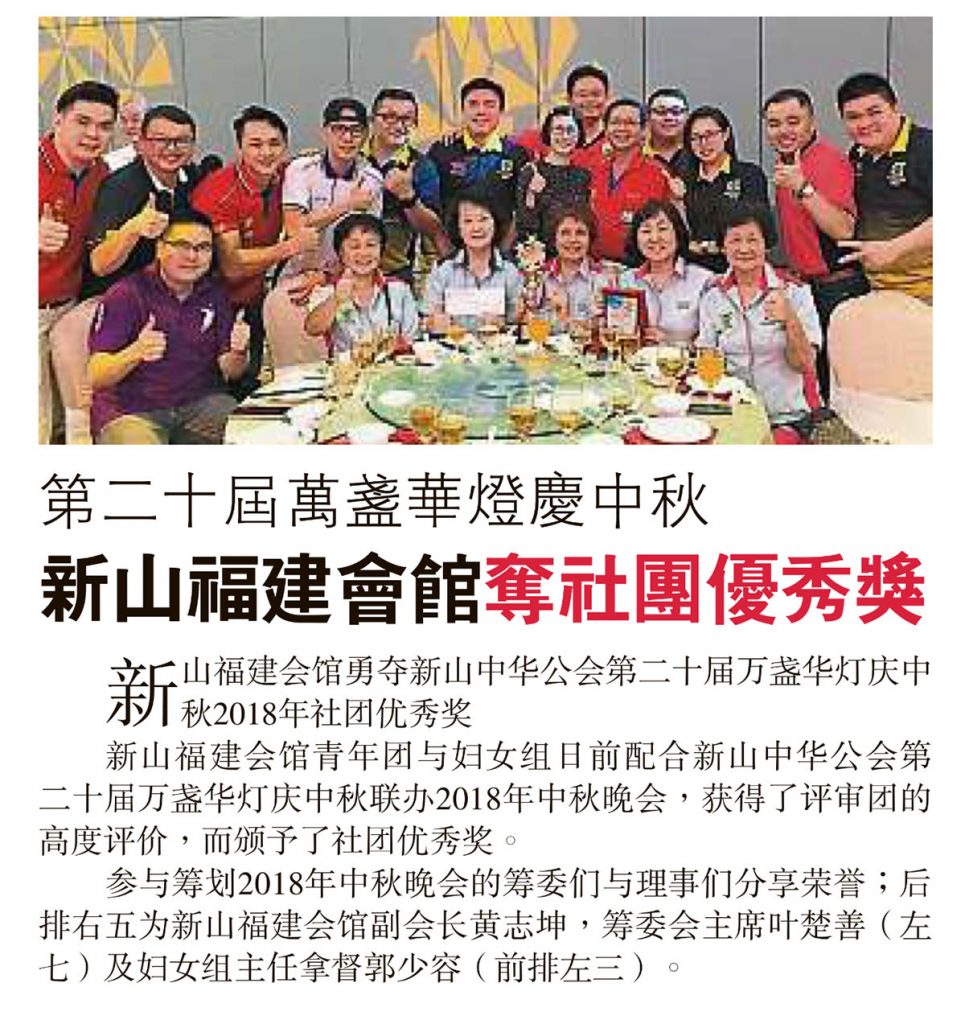 会馆活动 剪报室 November 11, 2018February 19, 2024 第二十届万盏华灯庆中秋-新山福建会馆夺社团优秀奖 Posted By: AdminTeam 1735 Views 星洲日报剪报