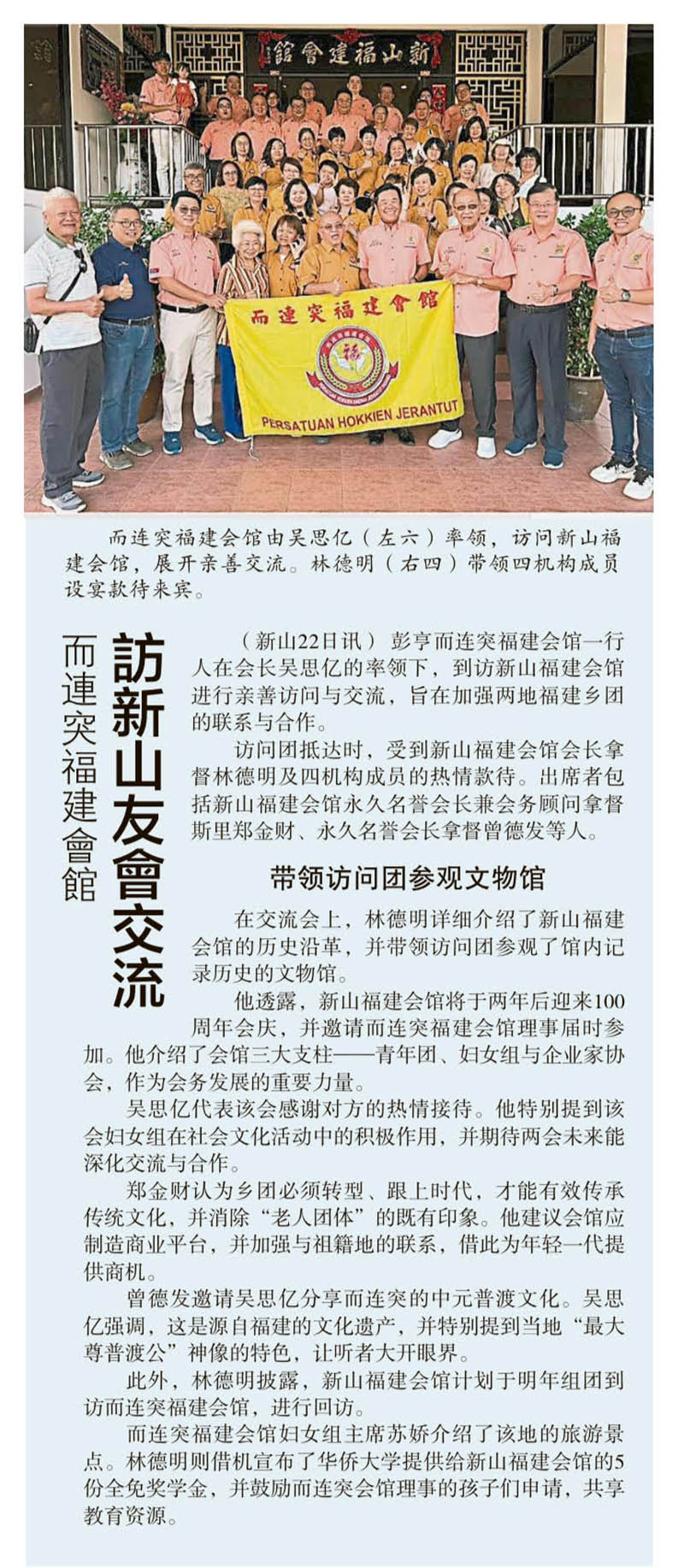 而连突福建会馆-访新山友会交流