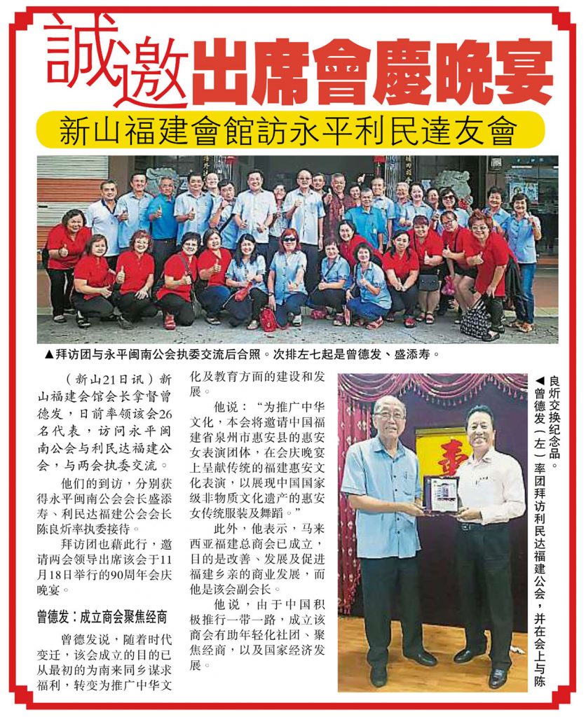 诚邀出席会庆晚宴-会馆访永平利民达友会