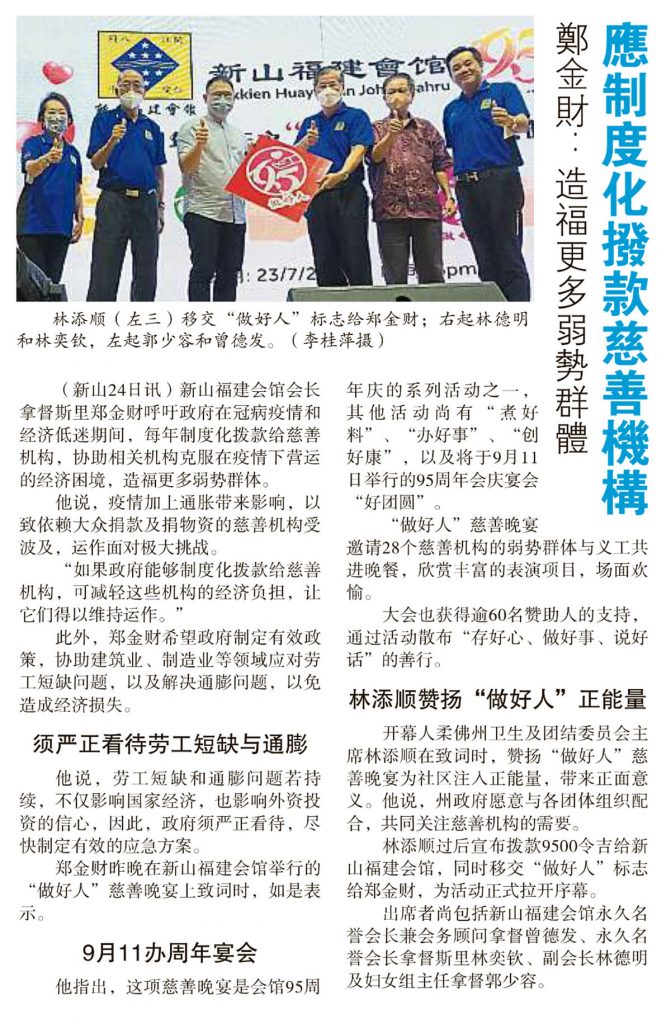 郑金财:造福更多弱势群体-应制度化拨款慈善机构