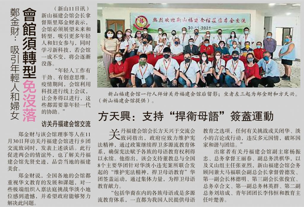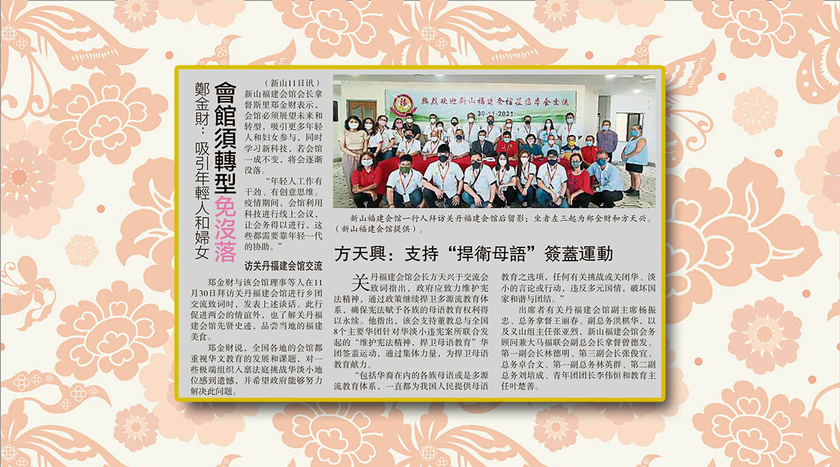 会馆动态 会馆活动 剪报室 December 12, 2021February 19, 2024 郑金财-吸引年轻人和妇女-会馆须转型免没落 Posted By: AdminTeam 593 Views 星洲日报剪报