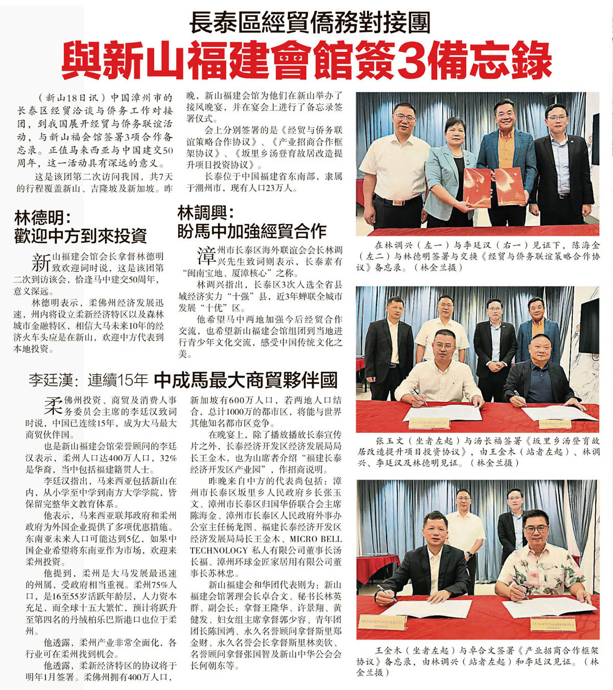 长泰区经贸侨务对接团-与新山福建会馆签3备忘录