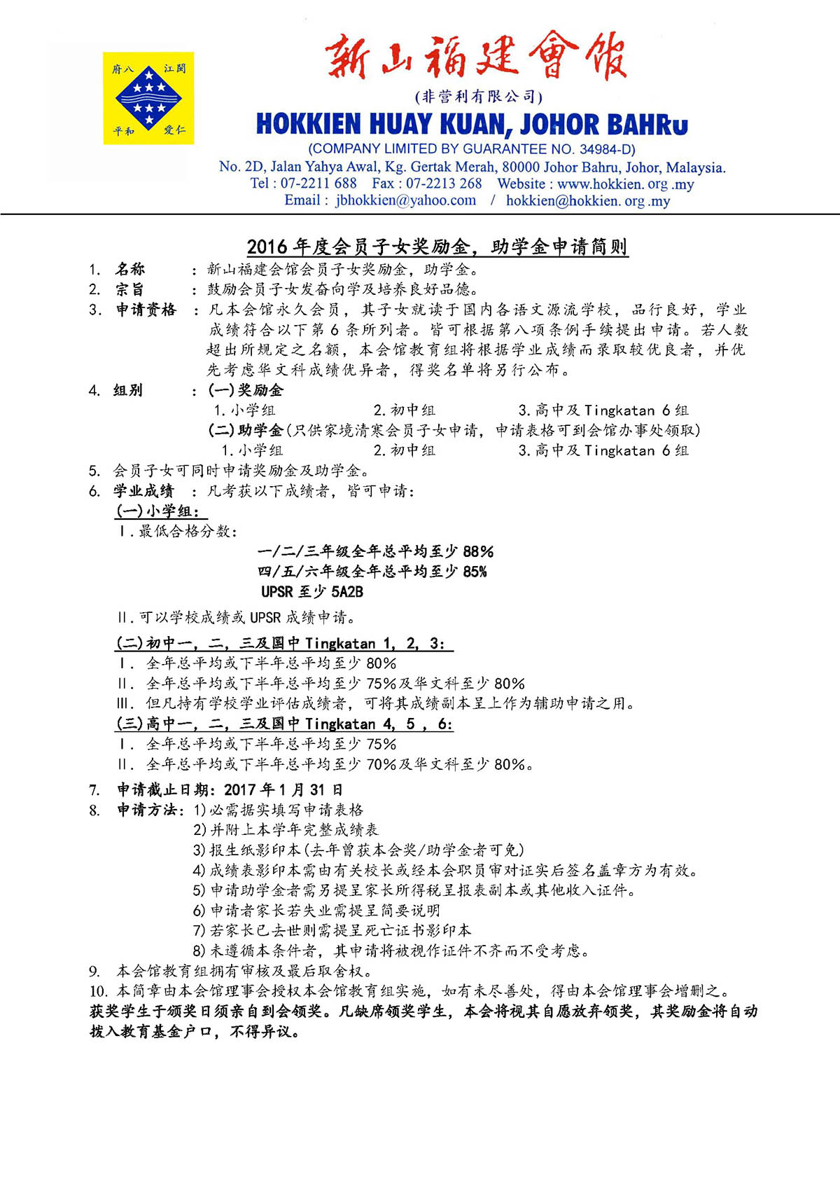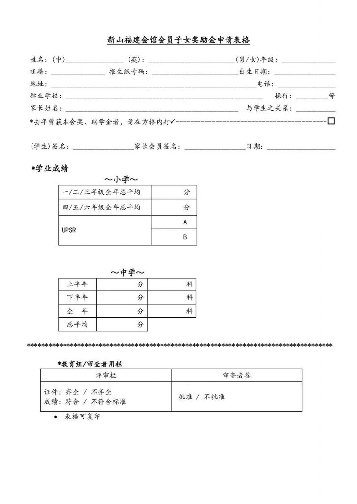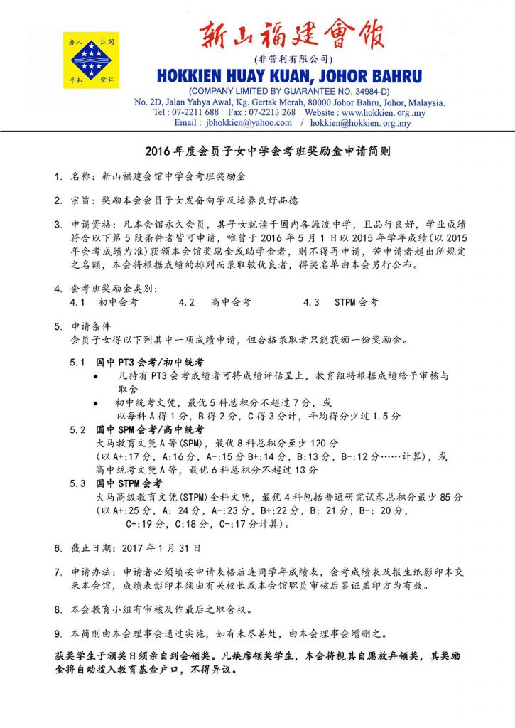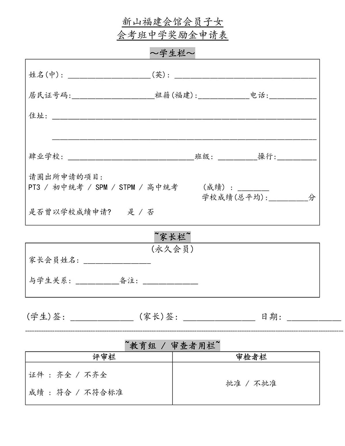 会馆活动 教育组 表格下载 January 13, 2017February 19, 2024 2016年度会员子女奖助学金 Posted By: AdminTeam 2799 Views 下载奖励金助学金申请简则 下载奖励金助学金申请表格 下载中学会考班奖励金申请简则 中学会考班奖励金申请表格