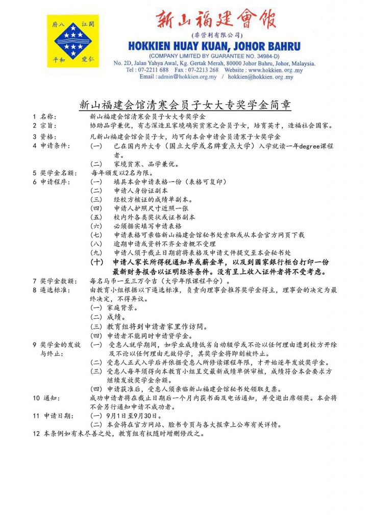 会馆动态 教育组 表格下载 August 30, 2018February 19, 2024 2018年度清寒会员子女大专奖学金 Posted By: AdminTeam 2143 Views 下载简章 下载表格