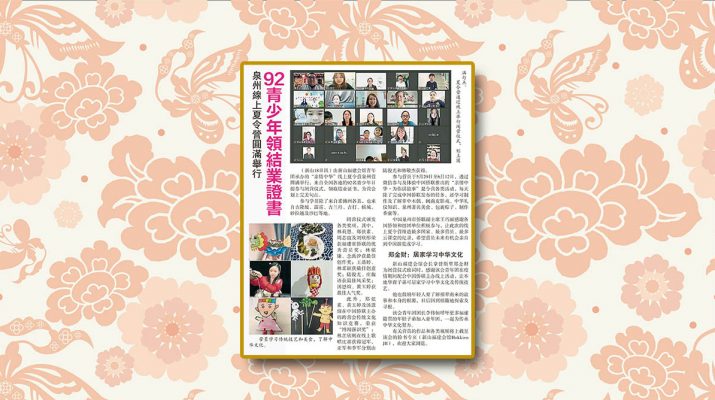 泉州线上夏令营圆满举行-92青少年领结业证书剪报。