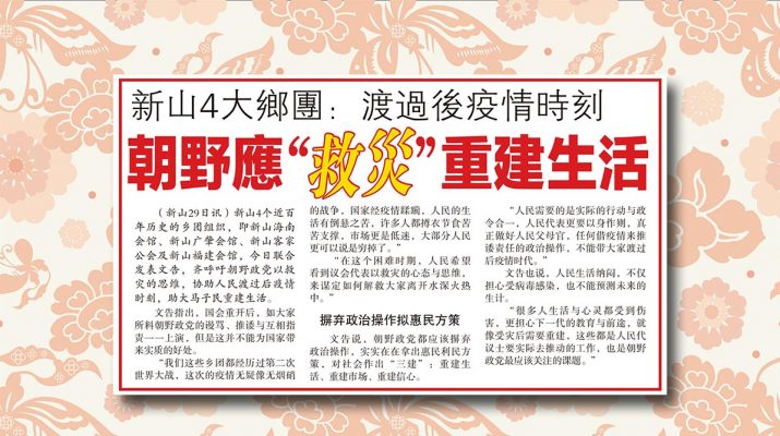 新山4大乡团:度过后疫情时刻-朝野应“救灾”重建生活剪报。