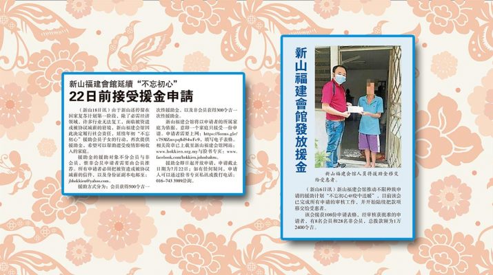 新山福建会馆发放援金剪报。