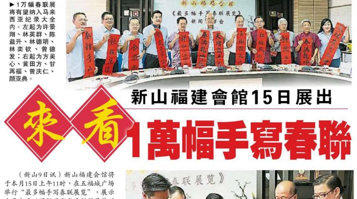 星洲剪报 10-1-2017 – 15日展出1万幅手写春联。
