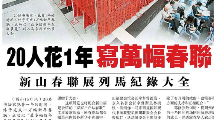 星洲剪报 10-1-2017 – 15日展出1万幅手写春联