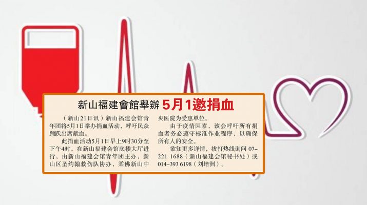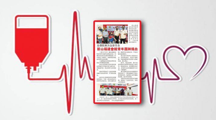 助医院解决血库告急-新山福建会馆青年团办捐血剪报。