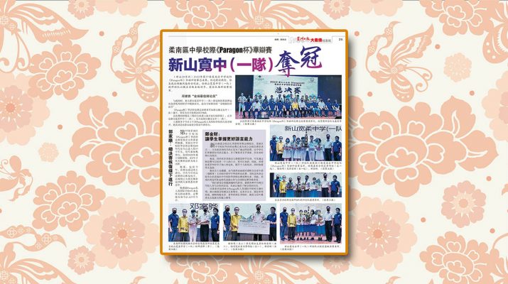 柔南区中学校际Paragon杯华辩赛-新山宽中一队夺冠剪报。