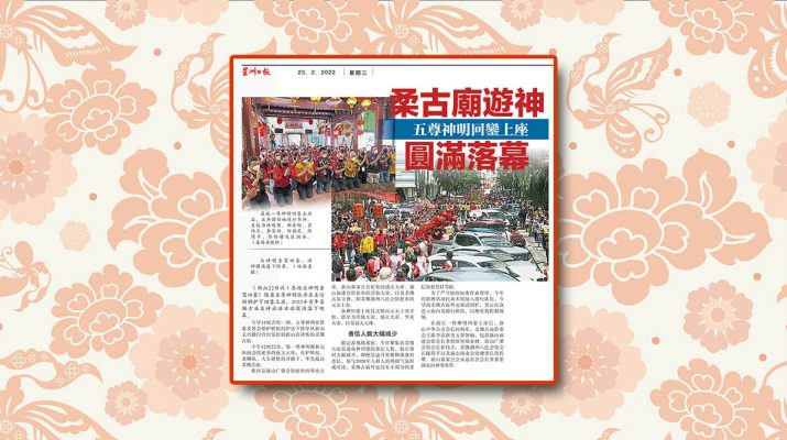 五尊神明回銮上座-柔古庙游神圆满落幕剪报。