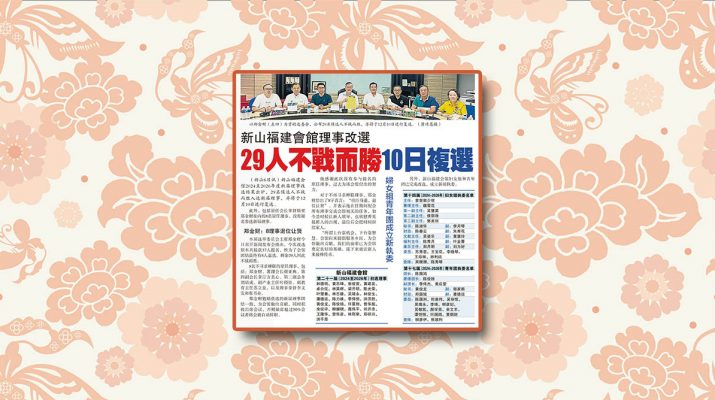 新山福建会馆理事改选-29人不战而胜10日复选剪报。